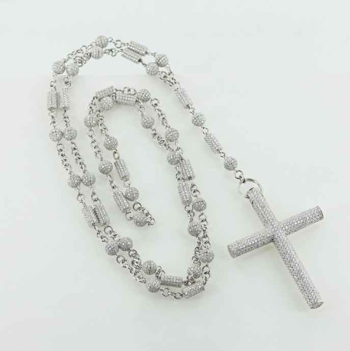 14 Karat White Gold 3768 Small Diamond Cross Necklace with Appraisal