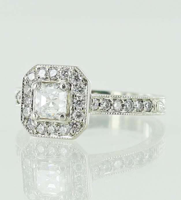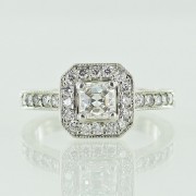 Ladies 18 Karat Square Emerald Cut Diamond Engagement Ring with GIA