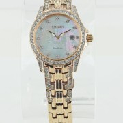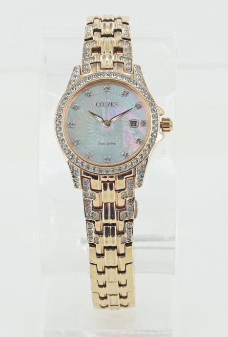 Ladies Citizen Eco-Drive Silhouette Crystal Rose-Tone Watch with Mother of Pearl Dial